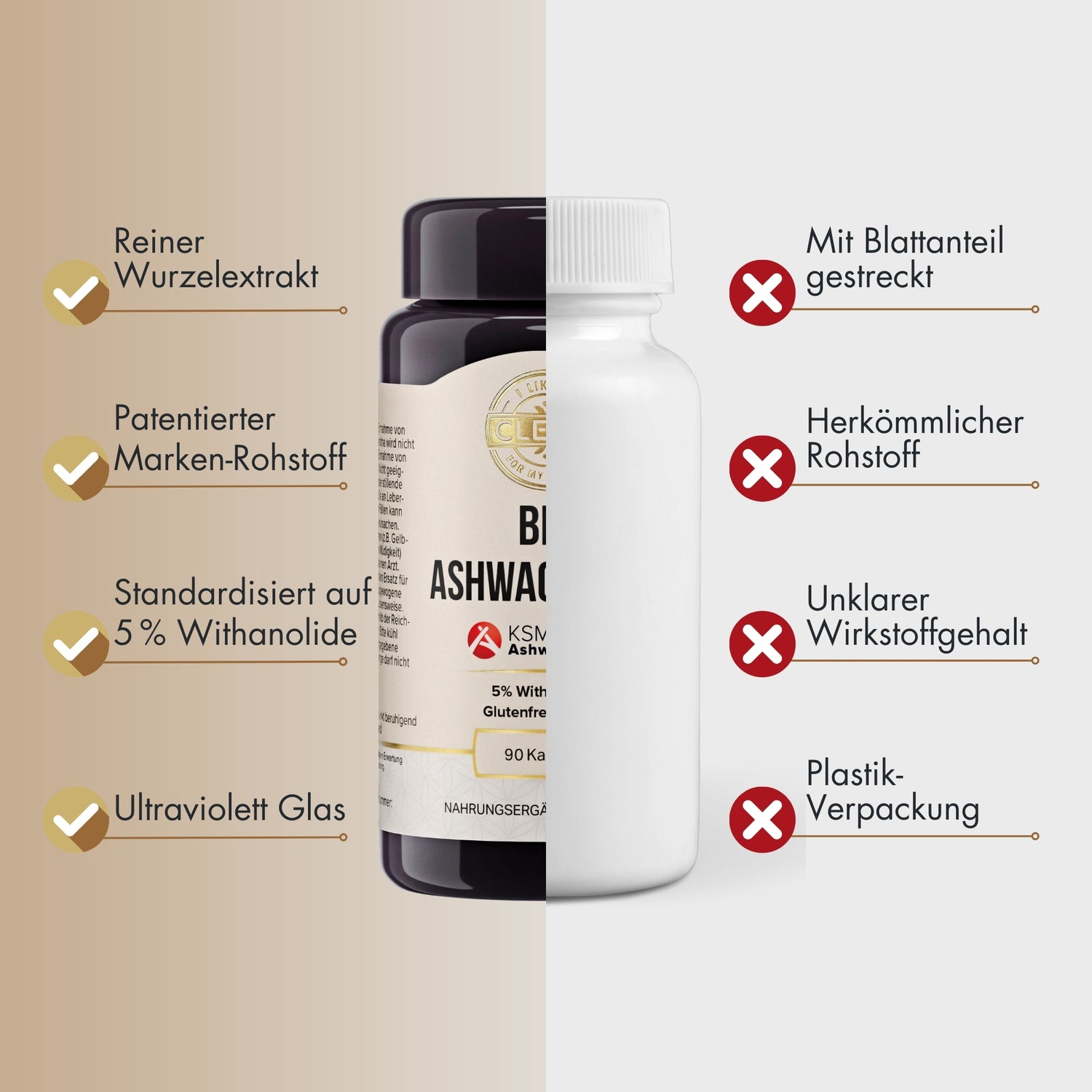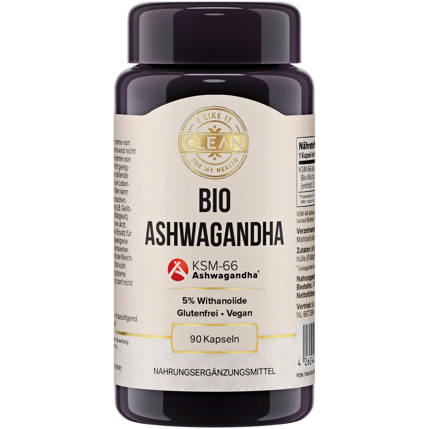 Die Rezeptur ist bewusst auf das Wesentliche reduziert. Enthalten sind ausschließlich der Bio-Ashwagandha-Wurzelextrakt sowie eine pflanzliche Kapselhülle. Das Produkt ist vegan, glutenfrei, gentechnikfrei und entspricht den geltenden Bio-Richtlinien. Auf künstliche Zusatzstoffe wird vollständig verzichtet.